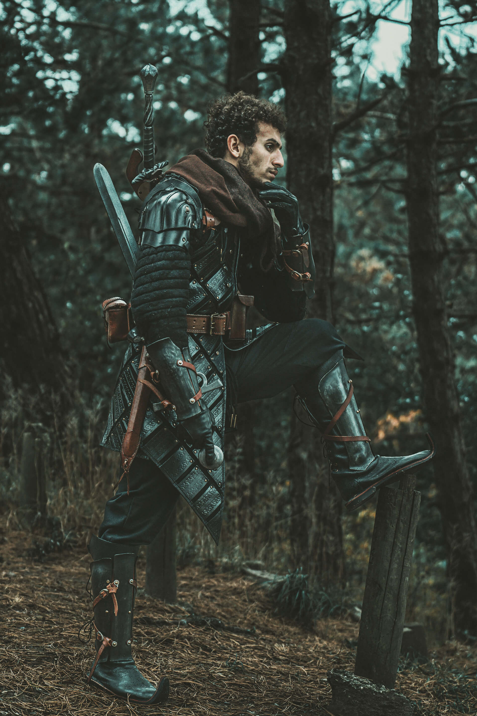 How to Care for Your LARP Gear: LARP character in armor standing in a field with swords.